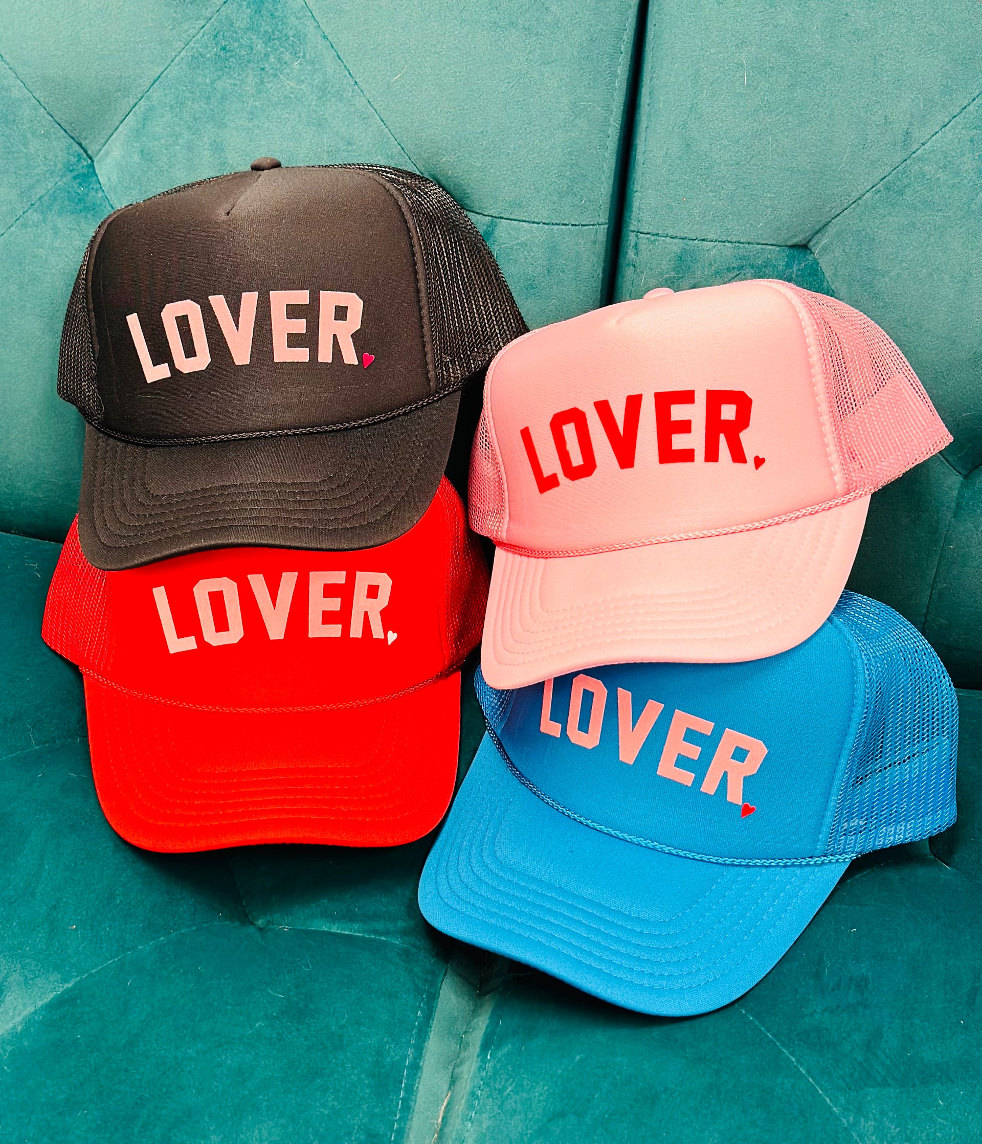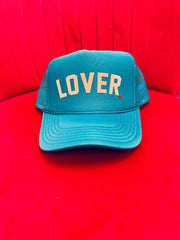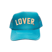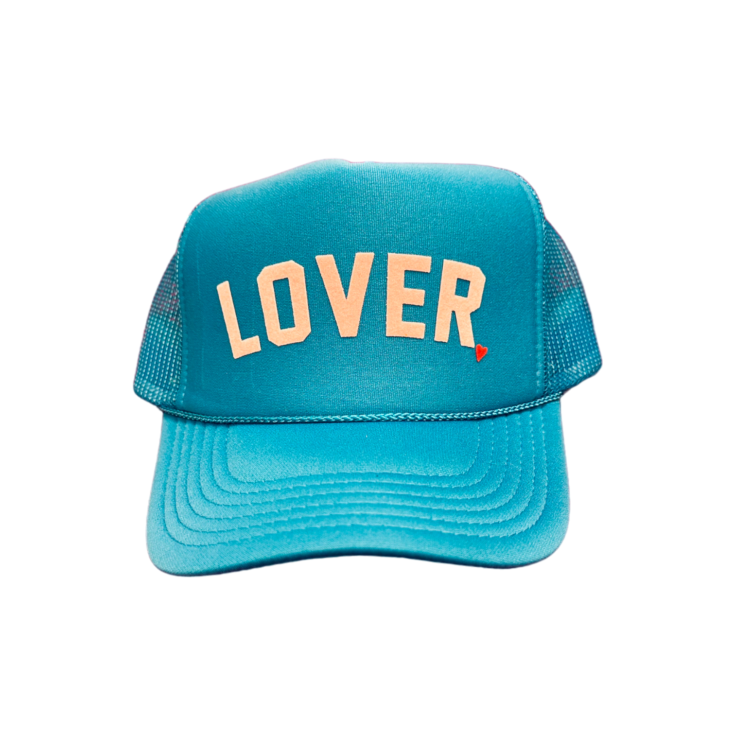 Super cute 'LOVER' teal trucker hat! This trucker hat is a unisex fit.