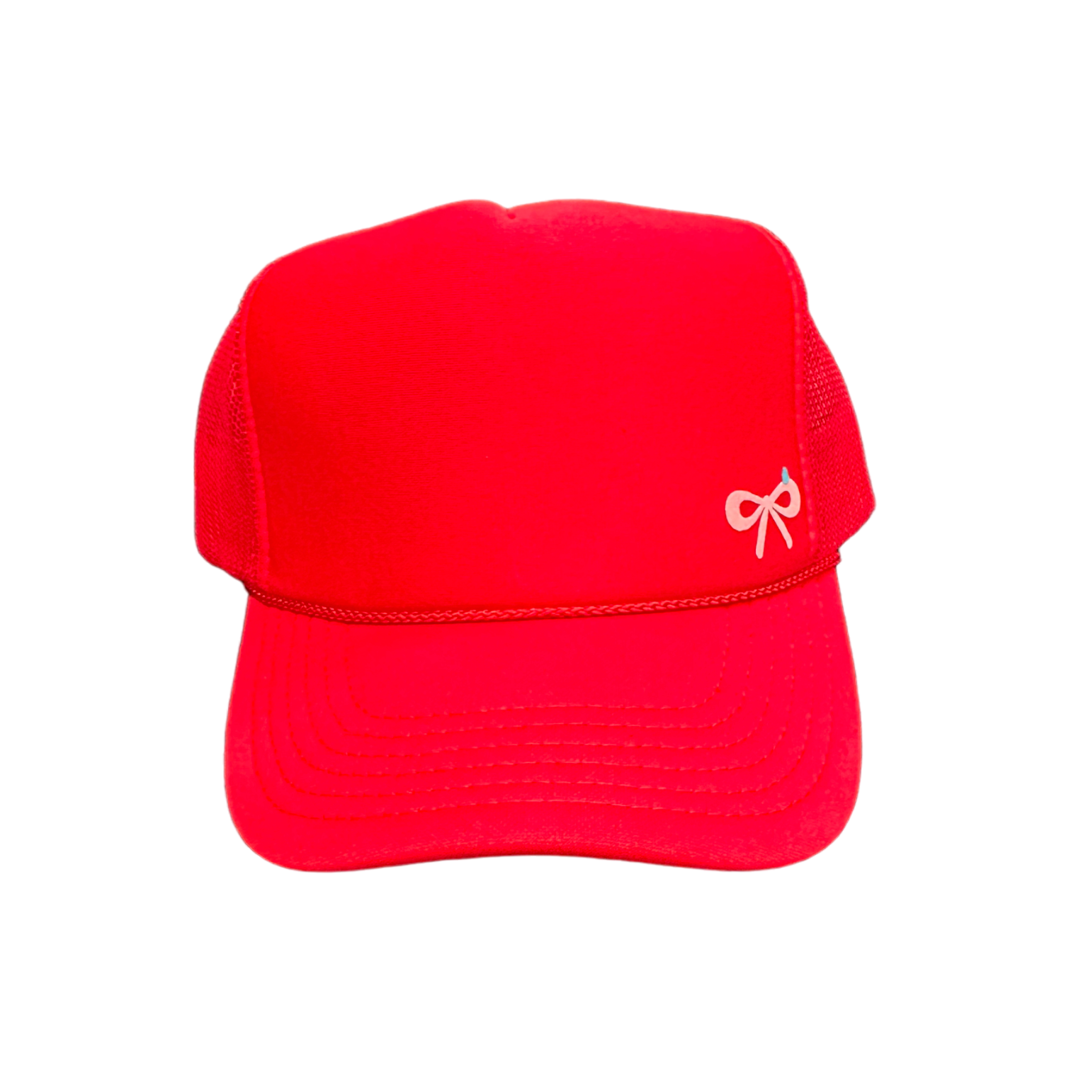 Super cute mini bow red trucker hat! This trucker hat is a unisex fit.