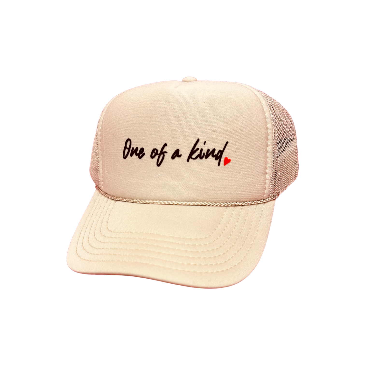 Super cute 'One of a kind' khaki trucker hat! This trucker hat is a unisex fit.