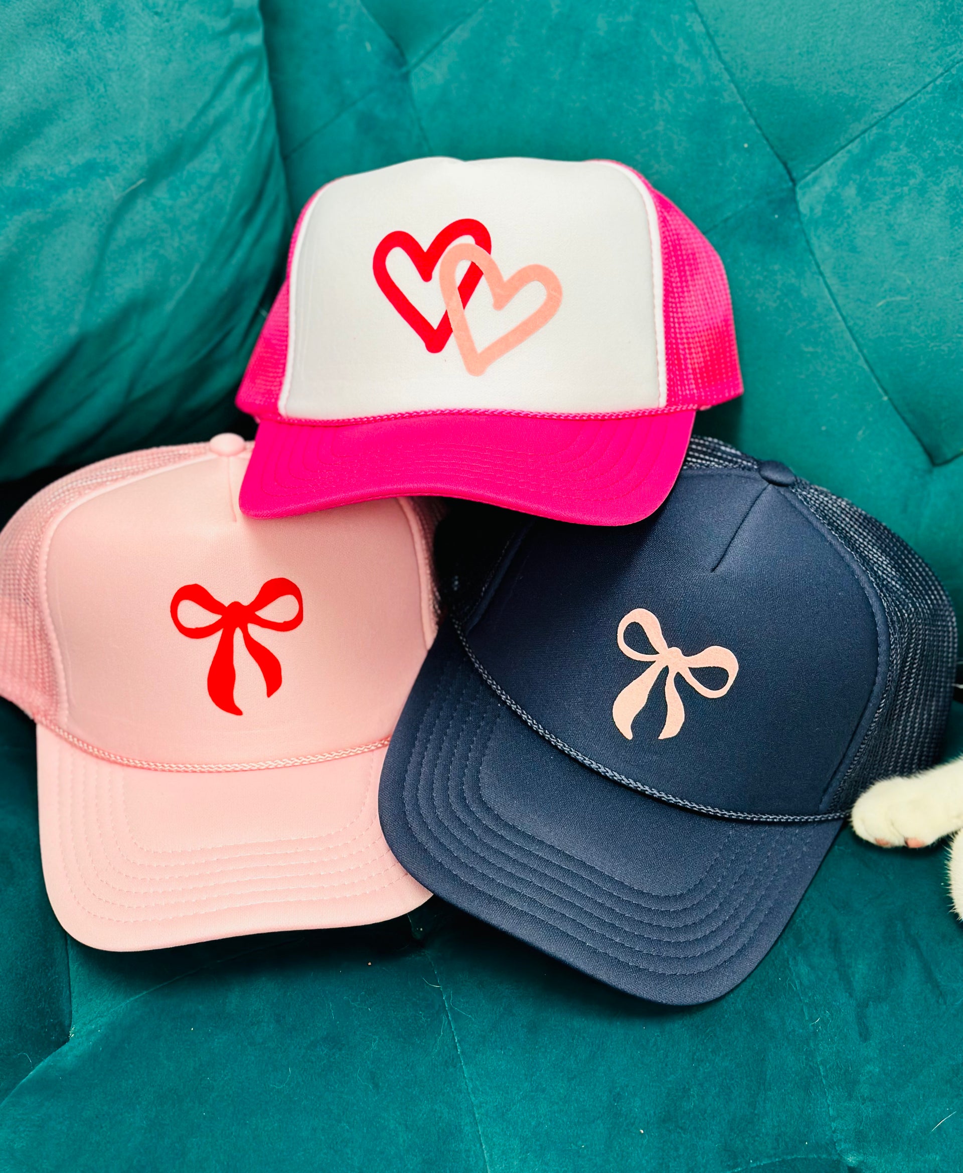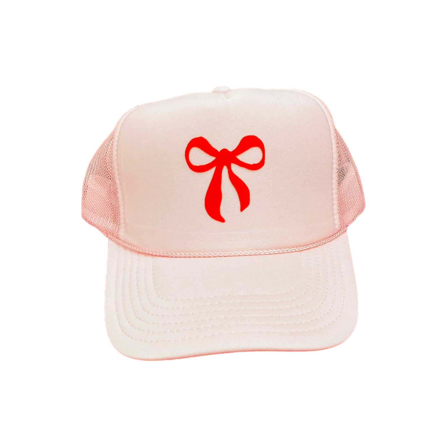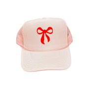 Super cute Red Bow light pink trucker hat! This trucker hat is a unisex fit.