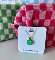 Unique hand-crafted & designed tiny round glass bauble necklace. 14mm glass bauble (about the size of a dime) on gold (16-1 inch, 1.5 mm) chain.