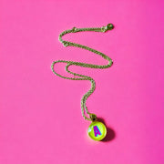 Unique hand-crafted & designed tiny round glass bauble necklace. 14mm glass bauble (about the size of a dime) on gold (16-1 inch, 1.5 mm) chain.