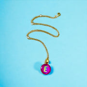 Unique hand-crafted & designed tiny round glass bauble necklace. 14mm glass bauble (about the size of a dime) on gold (16-1 inch, 1.5 mm) chain.