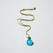 Unique hand-crafted & designed tiny round glass bauble necklace. 14mm glass bauble (about the size of a dime) on gold (16-1 inch, 1.5 mm) chain.