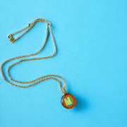 Unique hand-crafted & designed tiny round glass bauble necklace. 14mm glass bauble (about the size of a dime) on gold (16-1 inch, 1.5 mm) chain.
