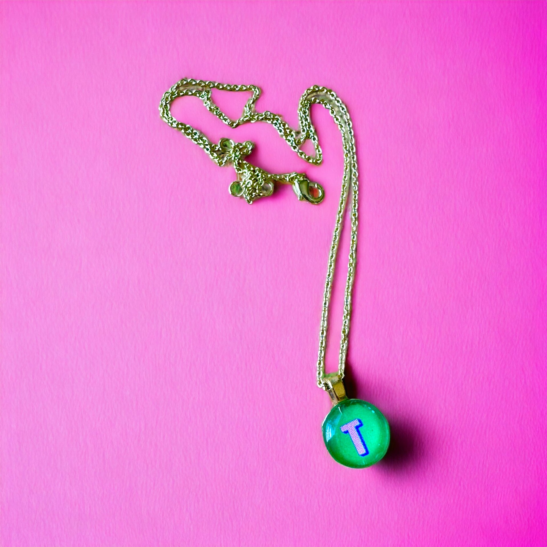 Unique hand-crafted & designed tiny round glass bauble necklace. 14mm glass bauble (about the size of a dime) on gold (16-1 inch, 1.5 mm) chain.
