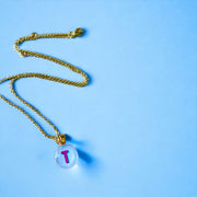 Unique hand-crafted & designed tiny round glass bauble necklace. 14mm glass bauble (about the size of a dime) on gold (16-1 inch, 1.5 mm) chain.