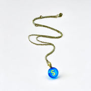 Unique hand-crafted & designed tiny round glass bauble necklace. 14mm glass bauble (about the size of a dime) on gold (16-1 inch, 1.5 mm) chain.