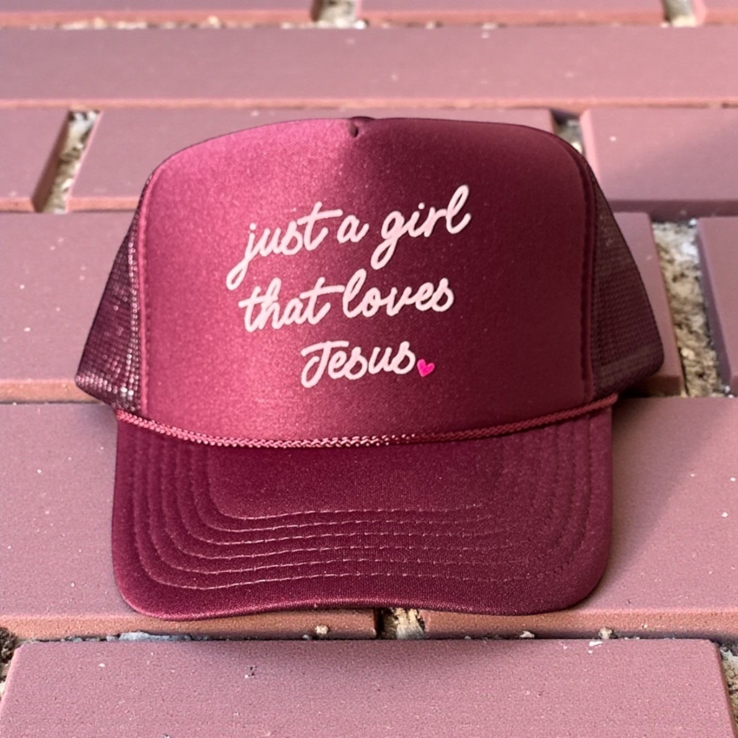 Just a girl that loves Jesus - Maroon Trucker Hat