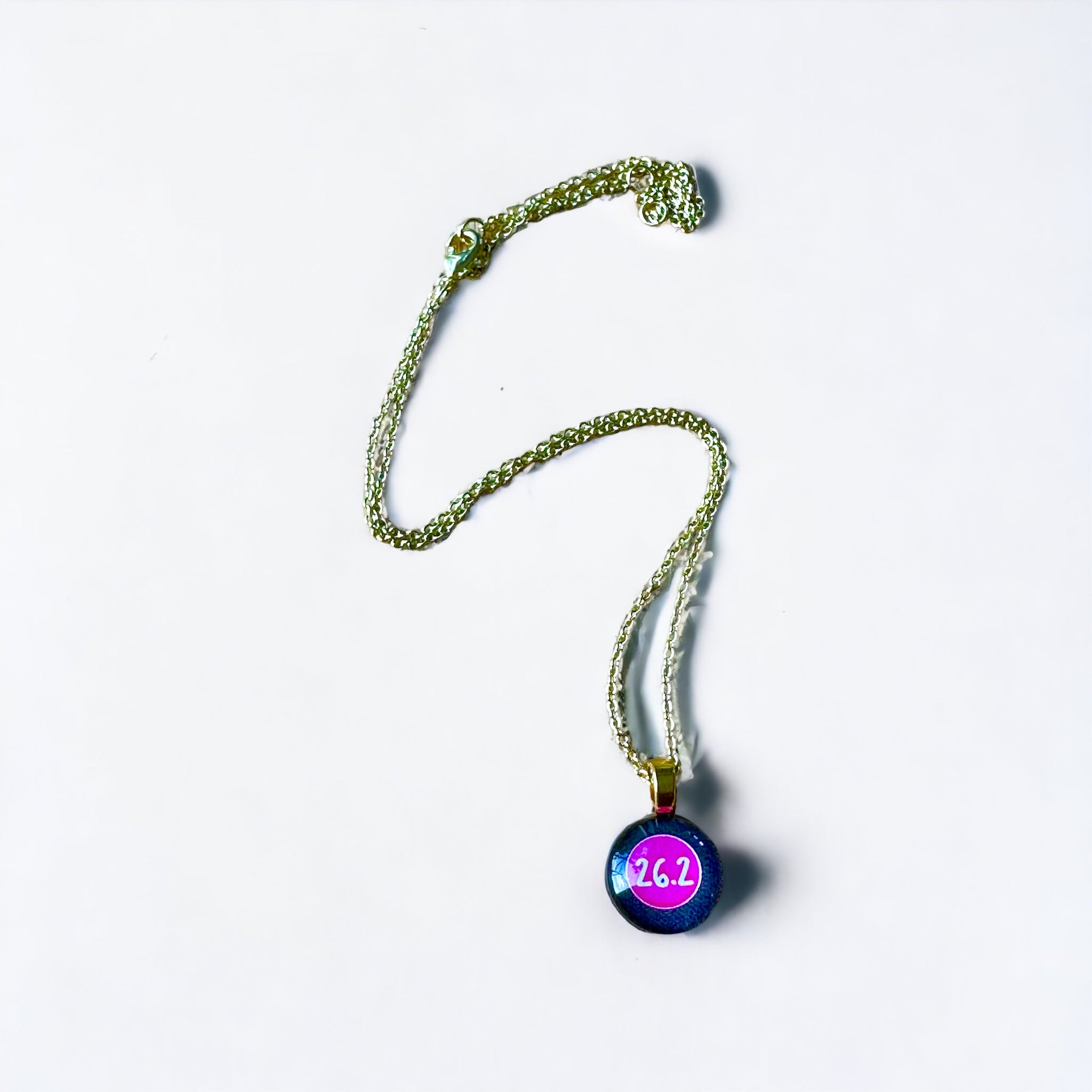 Unique hand-crafted & designed tiny round glass bauble necklace. 14mm glass bauble (about the size of a dime) on gold chain.