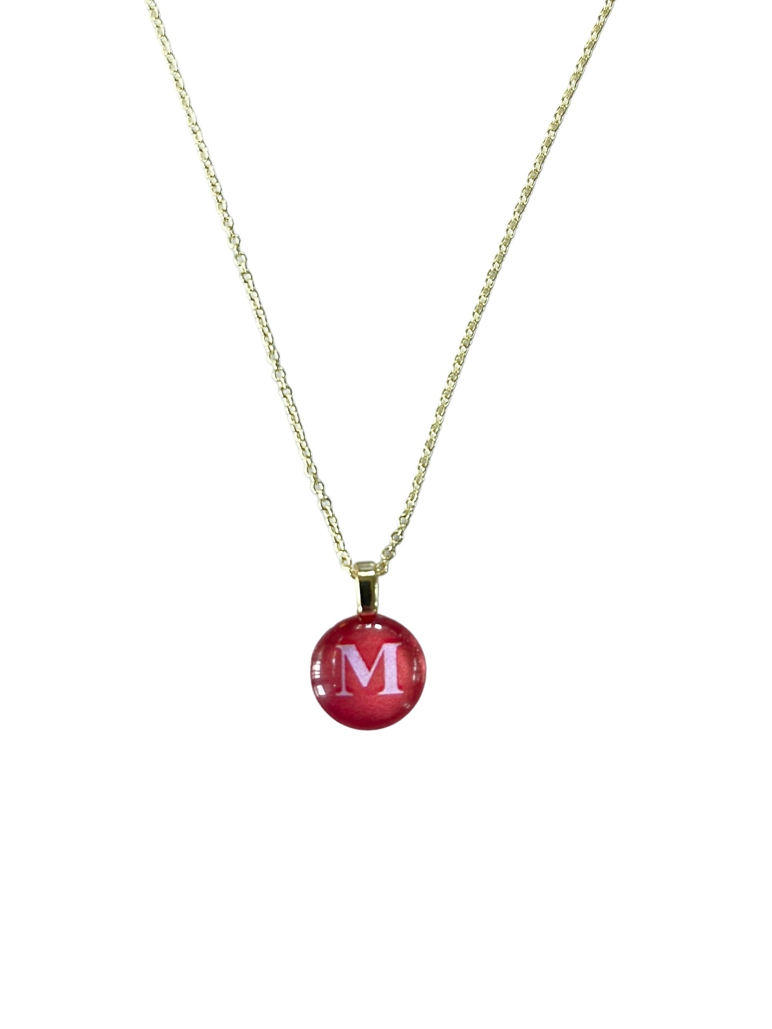Unique hand-crafted & designed tiny round glass bauble necklace. 14mm glass bauble (about the size of a dime) on gold (16-1 inch, 1.5 mm) chain.