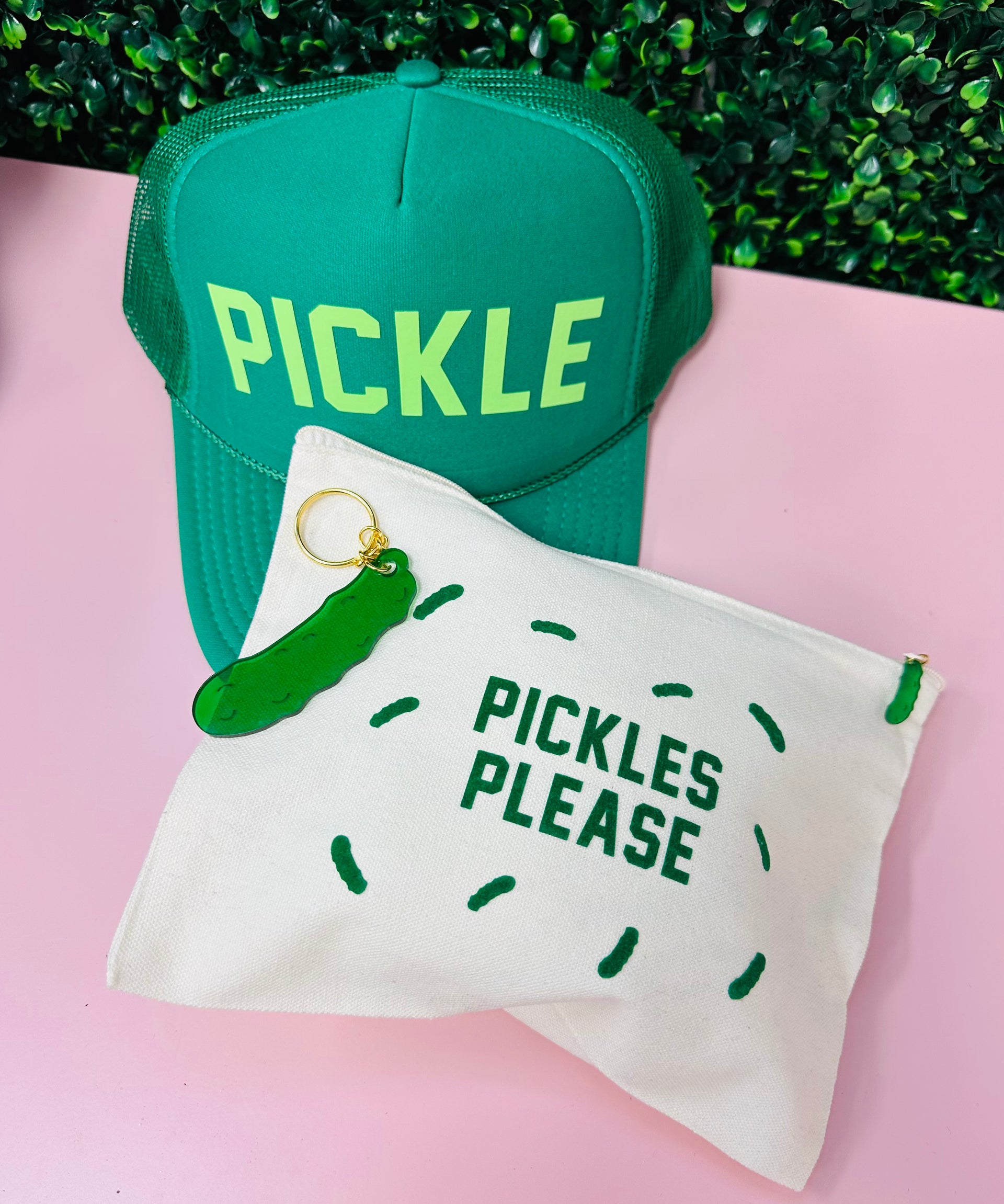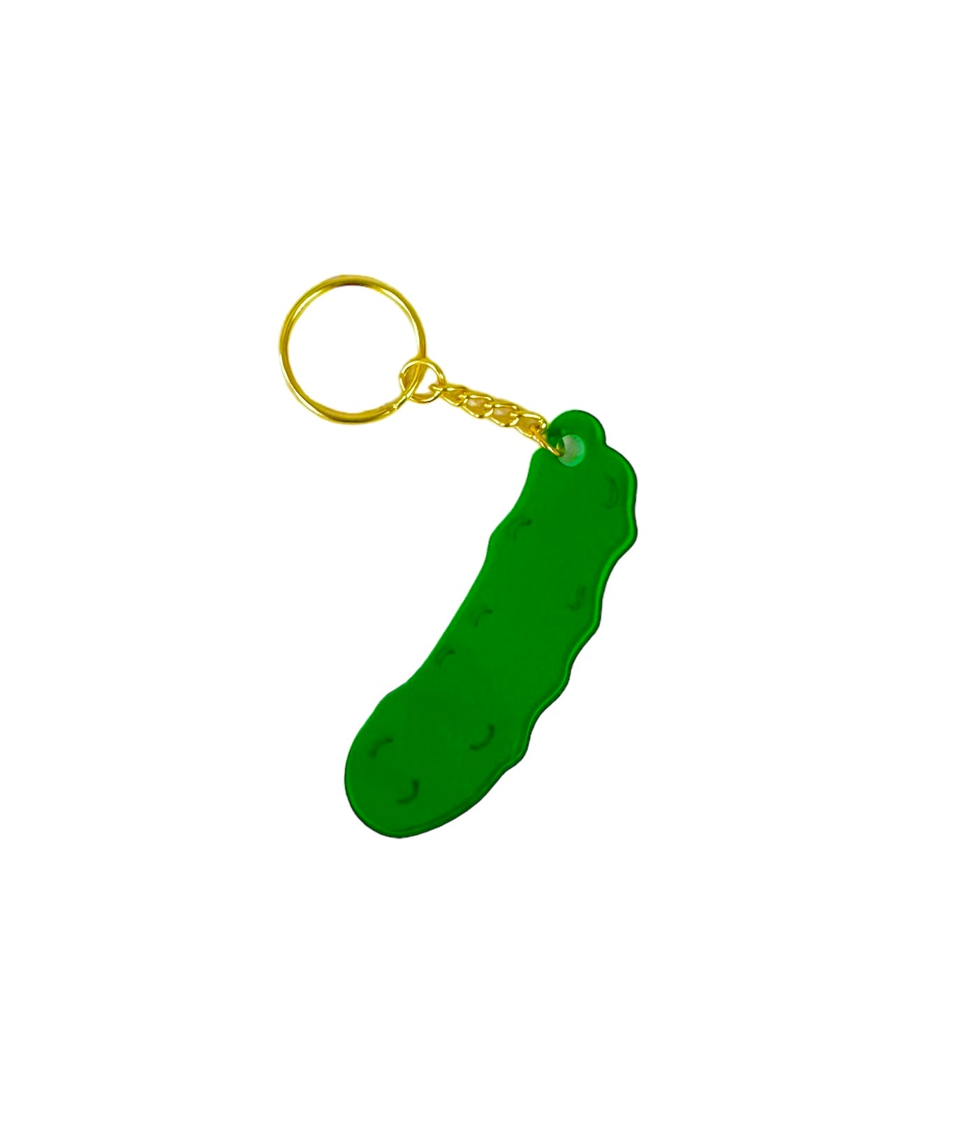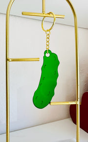 Super cute green translucent acrylic pickle key chain with gold key ring.
